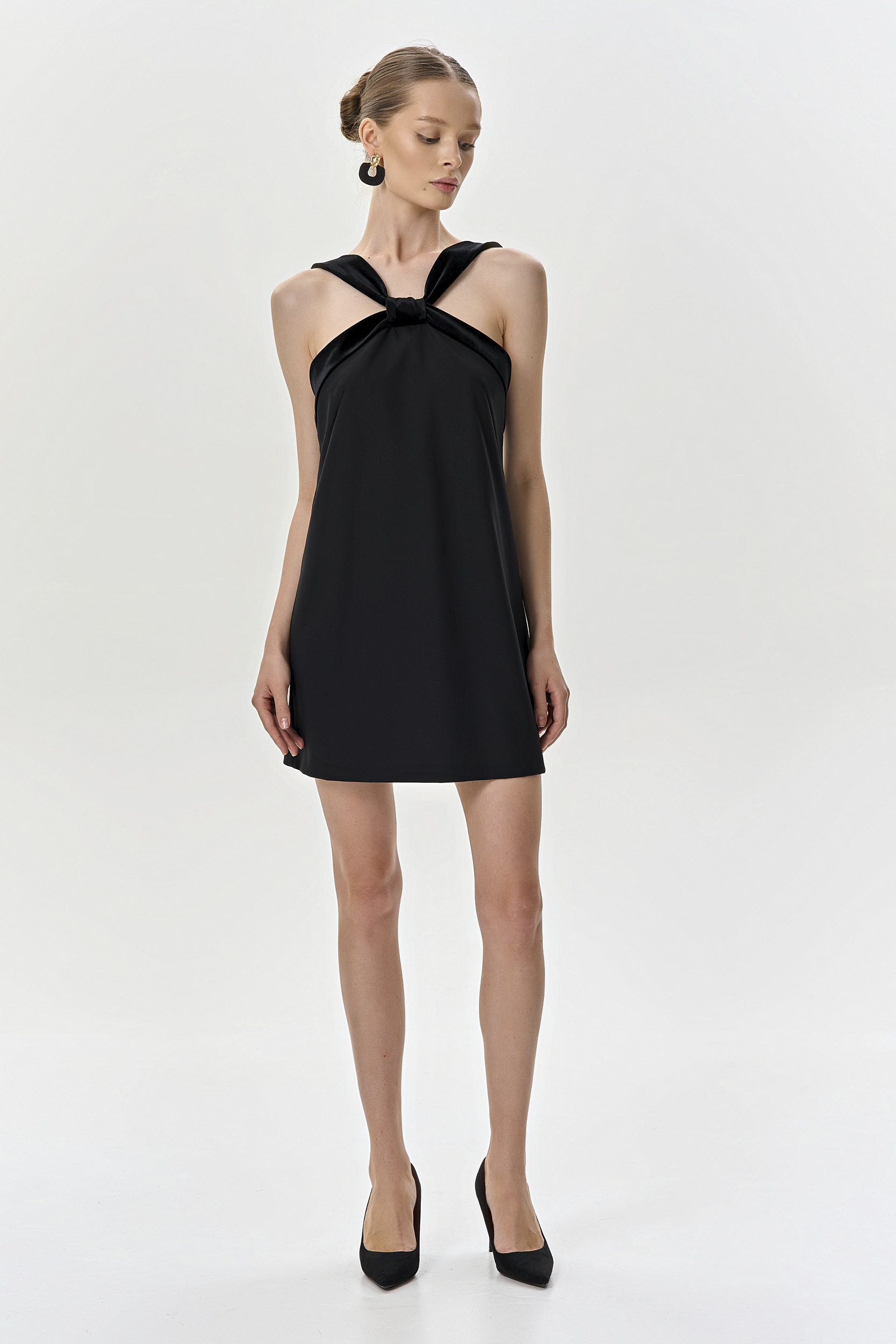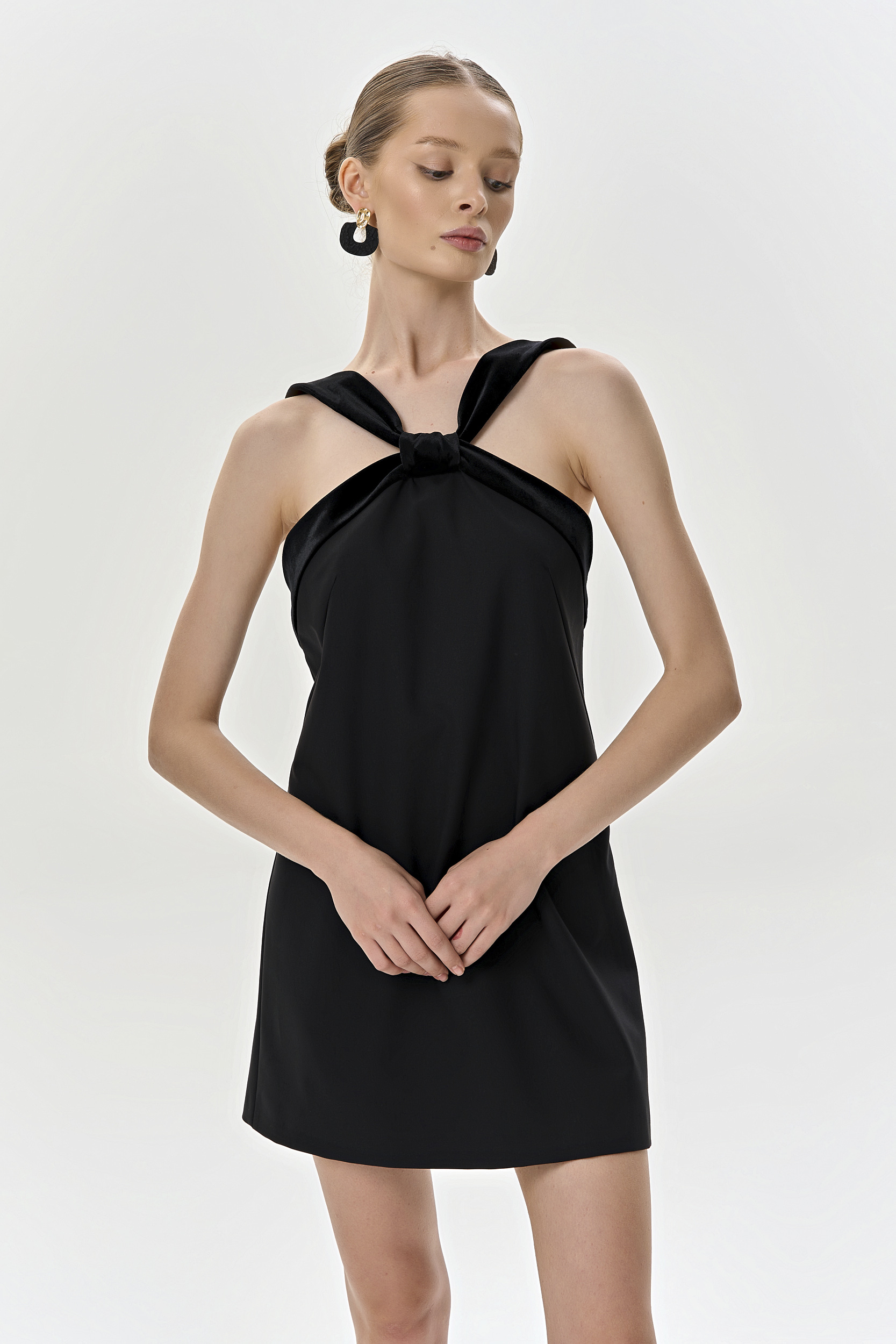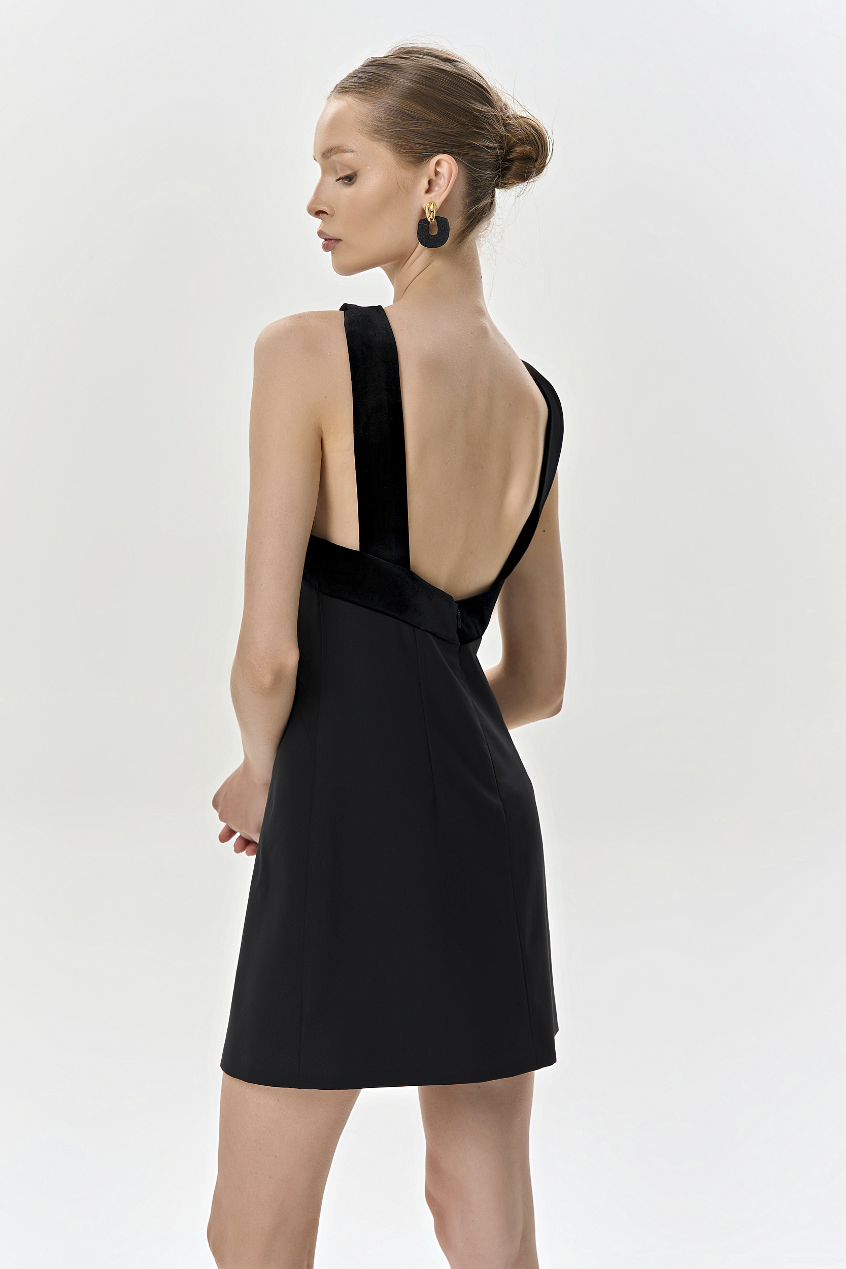 Платье-мини из шерсти и шелкового бархата