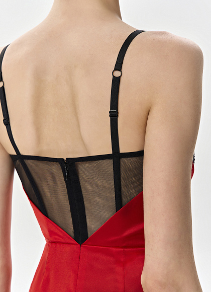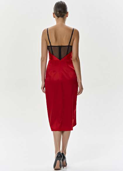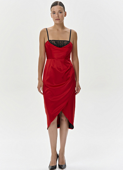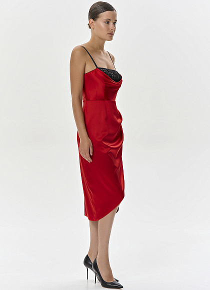 Красное платье-миди из шелка с вышивкой